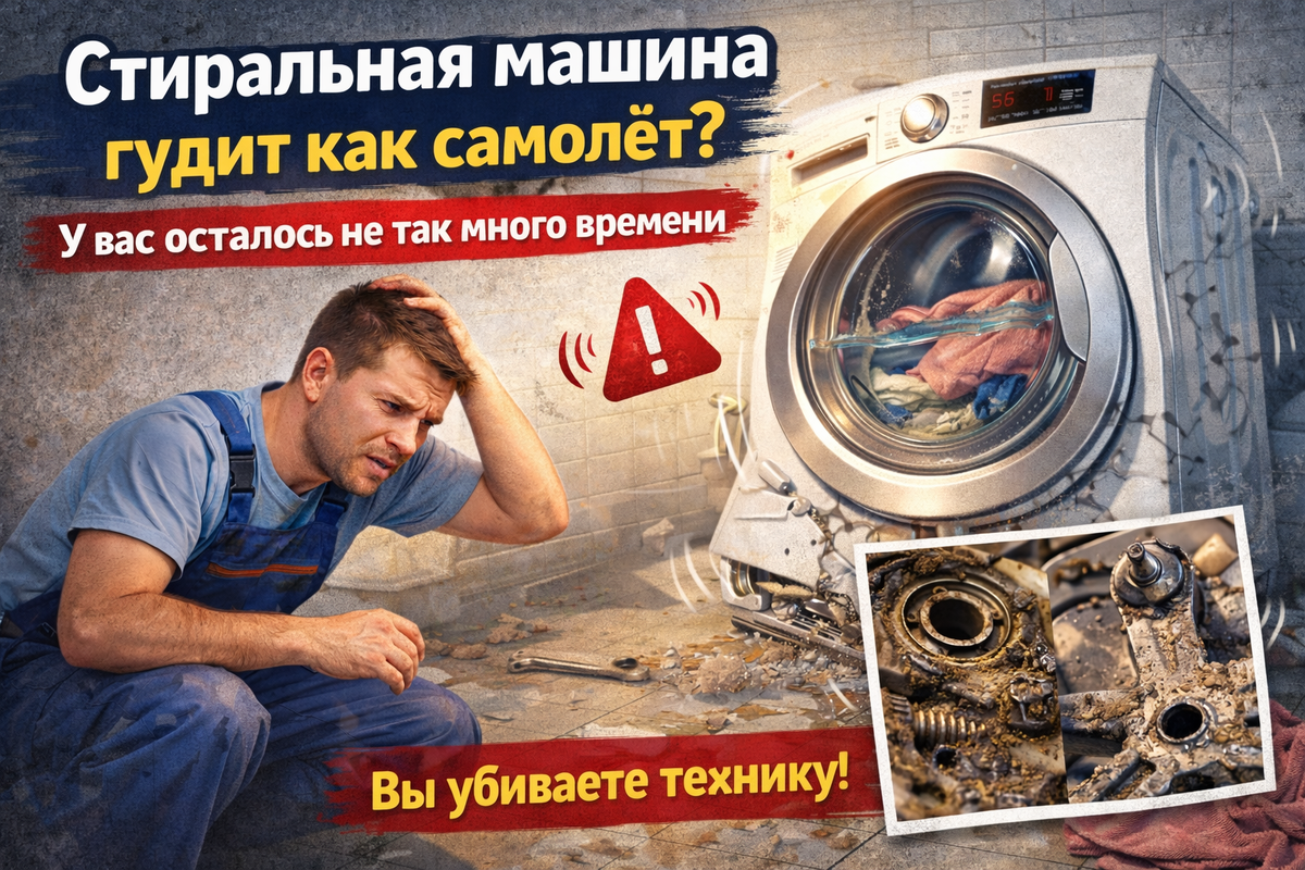 Если при отжиме появляется сильный гул, который слышно даже через закрытую дверь — это не «возраст».