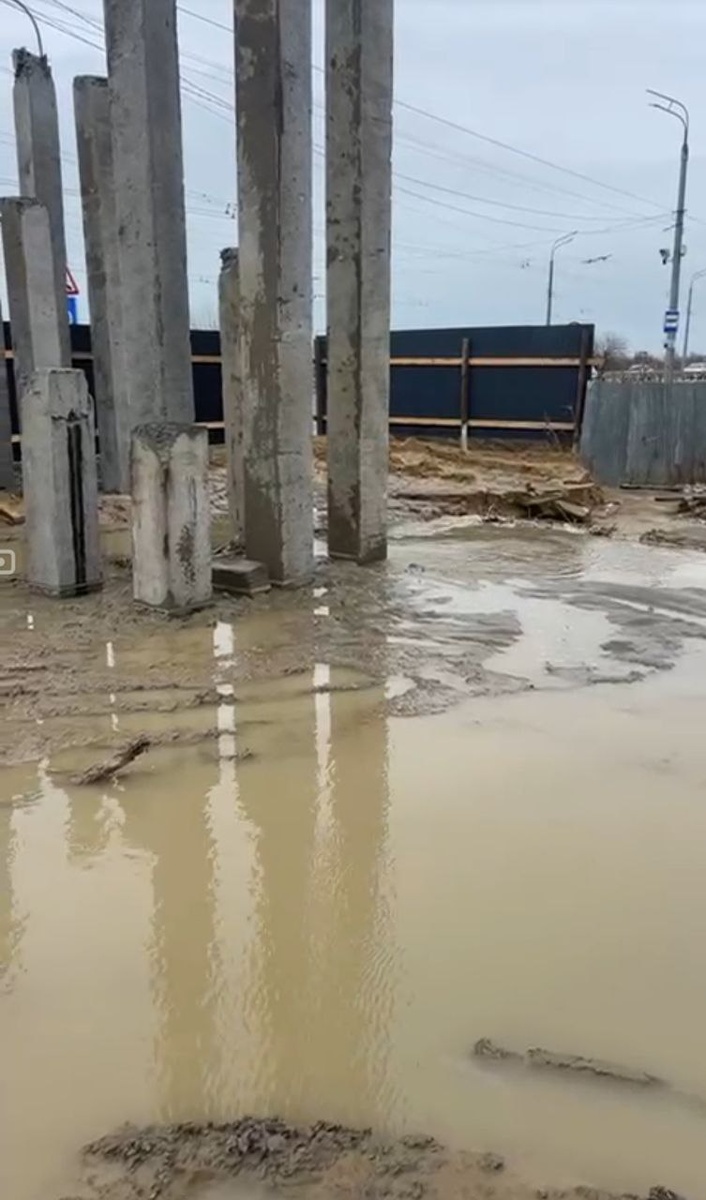 Пробили трубу, когда забивали сваи. Там, где строят пешеходный мост у светофора, через старую Каспийскую трассу." #нам_пишут Подписаться на "Черновик" 2.0 | Обратная связь: @chernovik_1_bot