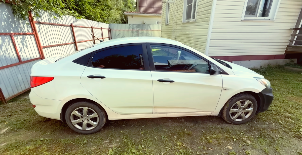 Когда мне сказали, что есть Hyundai Solaris с пробегом больше миллиона километров и без капиталки мотора - я отнёсся к этому скептически. Мало ли что люди рассказывают. Поехал в Подмосковье, чтобы посмотреть своими глазами. Машина стоит во дворе. 2012 год выпуска. Один владелец с момента покупки у дилера в Москве. Пробег на момент встречи - 1 443 000 километров. Мотор 1.4, без турбины, без капитального ремонта. Раньше такое говорили про старые Мерседесы. Теперь вот Solaris. Дима купил машину в мае 2012 года за 498 000 рублей - с дополнительным оборудованием, которое тогда уже навязывали при покупке. Работал на ней - возил людей на работу и с работы, каждый день без выходных. В 2012-2014 годах бывало по тысяче километров в день. Обслуживал сам. На официальный сервис заезжал один раз - на бесплатное ТО. При нём проверили давление в шинах, показали 3,5 атмосферы в каждом колесе и отпустили. Масло менял каждые 15 000 км. Использовал Mobil, позже перешёл на оригинал - прислали спонсоры кана