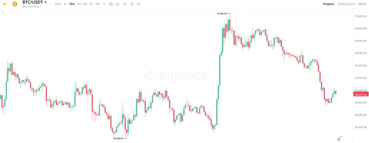 Сегодня Биткоин находится ниже 67 тысяч долларов. За сутки криптовалюта прибавила чуть меньше 1 процента стоимости.