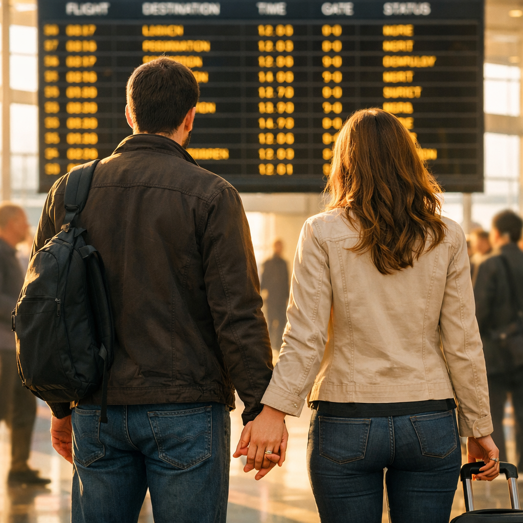 Мы сидели так, и аэропорт гудел вокруг, и табло щёлкало, обновляя рейсы — новые самолёты, новые города, новые опоздания. А мы уже никуда не летели. Мы уже были там, куда нужно.