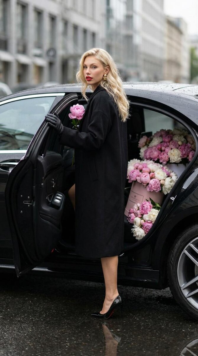 ✨✨✨✨✨✨✨✨✨✨ luxury снимок с пионами ✨ зайди в бот @aibudka_bot ✨ отправь фото (где хорошо видно лицо) и открой редактор ✨ выбери нейросеть Nano Banana (обязательно PRO-режим для топ-результата) ✨ установи качество 2К, соотношение сторон 9:16 (или другой формат по вкусу) ✨ вставь этот промпт (просто нажми, чтобы скопировать): Сохрани лицо с загруженного фото. Не меняй лицо. Кинематографичный фэшн снимок. Женщина выходит из чёрного Mercedes, одна нога в чёрной лакированной туфле на асфальте, рука в кожаной перчатке на двери, оглядывается на камеру через плечо. На пассажирском сиденье за ней — огромная гора из розовых и белых пионов в шляпных коробках и без, десятки букетов заполняют всё сиденье, часть пионов высыпалась на пол машины. Один пион в её руке. Чёрное кашемировое пальто, золотые серьги, красная помада. Городская улица, мокрый асфальт, отражения. Мягкий пасмурный дневной свет, серебристые тона города контрастируют с нежно-розовыми пионами. Luxury editorial. ❤️ https://t.me/aib