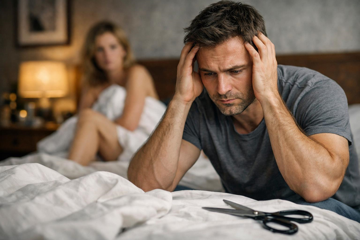 Мужчина может железной рукой управлять корпорацией, жать от груди сто двадцать килограммов и сохранять ледяное спокойствие в эпицентре кризиса, но пасовать перед обычной белой простынёй. Этот парадокс я наблюдаю годами: внешне безупречный «альфа» внезапно превращается в растерянного подростка, когда дело доходит до постели. Его тело, которое никогда не подводило в марафонах или на переговорах, вдруг объявляет забастовку и просто «выключается» в самый ответственный момент.
