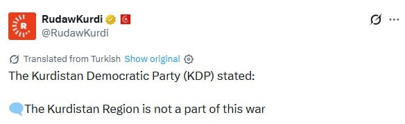 'Kurdistan Region NOT part of this war being waged in region'