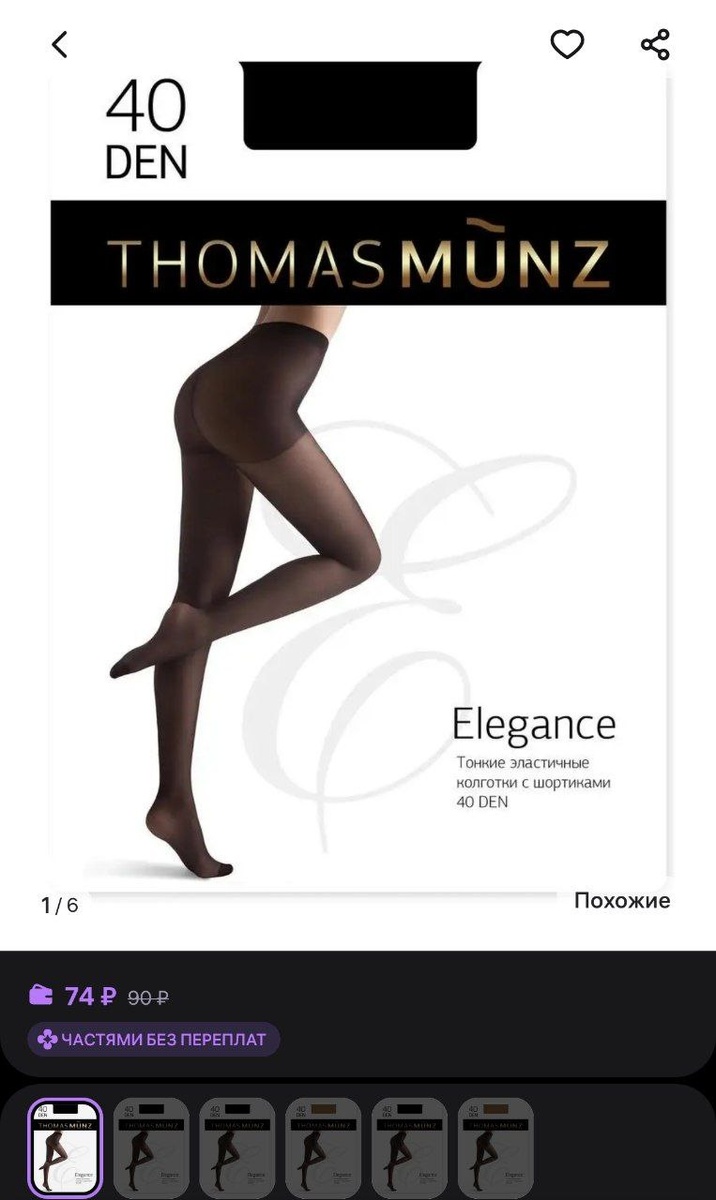 Колготки капроновые 40 ден черные THOMAS MUNZ за 74₽