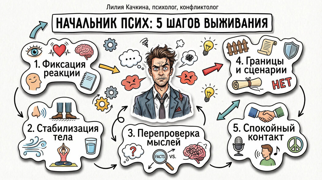 Мой клиент чуть ли не со слезами говорит: «Меня трясёт от одного вида начальника. Сердце колотится, в голове пусто, потом ругаю себя за “слабость”. Уволиться сейчас не могу: ипотека, семья, рынок. Но каждый разговор с ним — как допрос, и я живу в постоянном напряжении». В этой статье я расскажу как выжить в ситуации психологического гнета, когда нет возможности уволится в работы. Образ клиента собирательный,