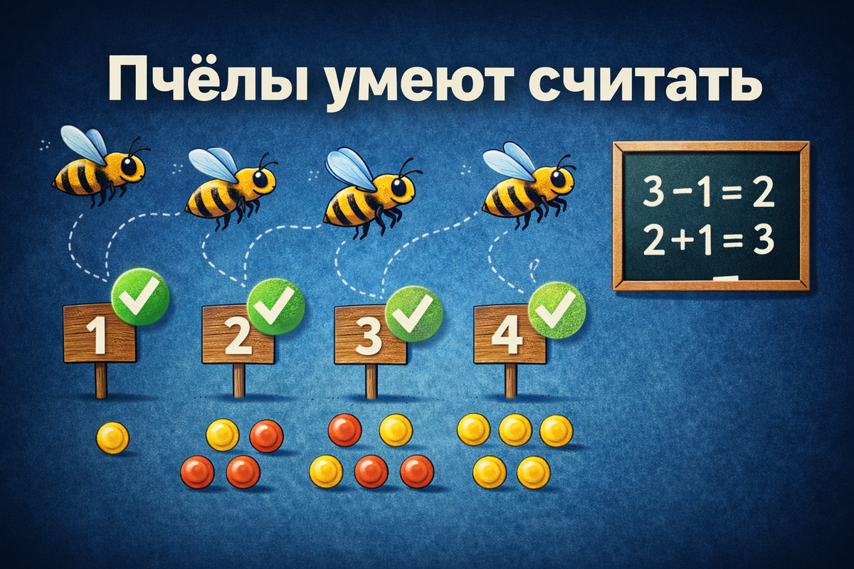 Это означает, что пчёлы способны не просто считать объекты, но и выполнять элементарные математические операции.