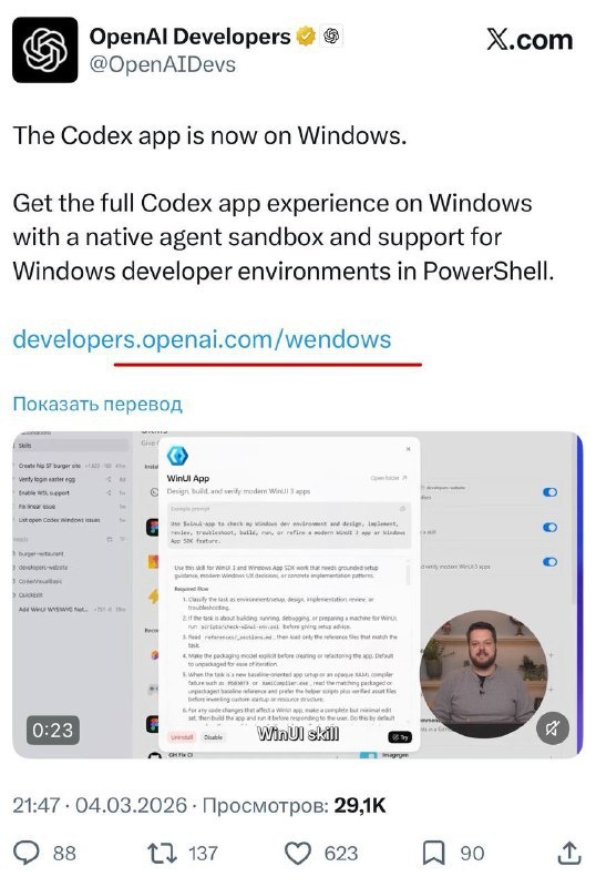 🙅 Маленькому стартапу OpenAI потребовался месяц, чтобы выкатить нативный клиент для своего кодерского агента под операционку МикроСлоповцев. Но самое смешное в этом то, как они это представили: это же буквально скрытый анонс новой MicroSlop Wendows 12 😂 Кстати, Microsoft владеют 27% акций компании OpenAI 🤣 https://clck.ru/3RSG9p