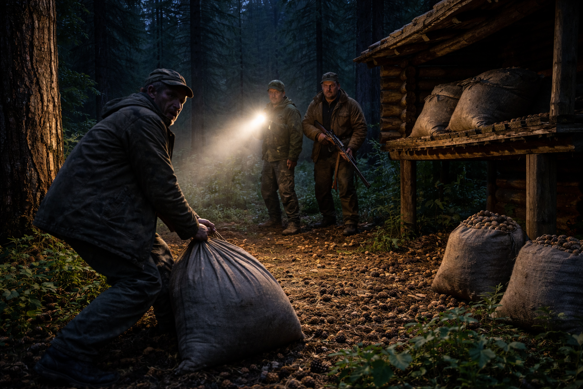 Осенью тайга меняется. Воздух становится сухим и прозрачным, ночами ударяет первый мороз, а кедры начинают ронять тяжёлые шишки. Для промысловиков это особое время — сезон кедрового ореха. Иногда за месяц можно заработать больше, чем за всю зиму на пушнине.