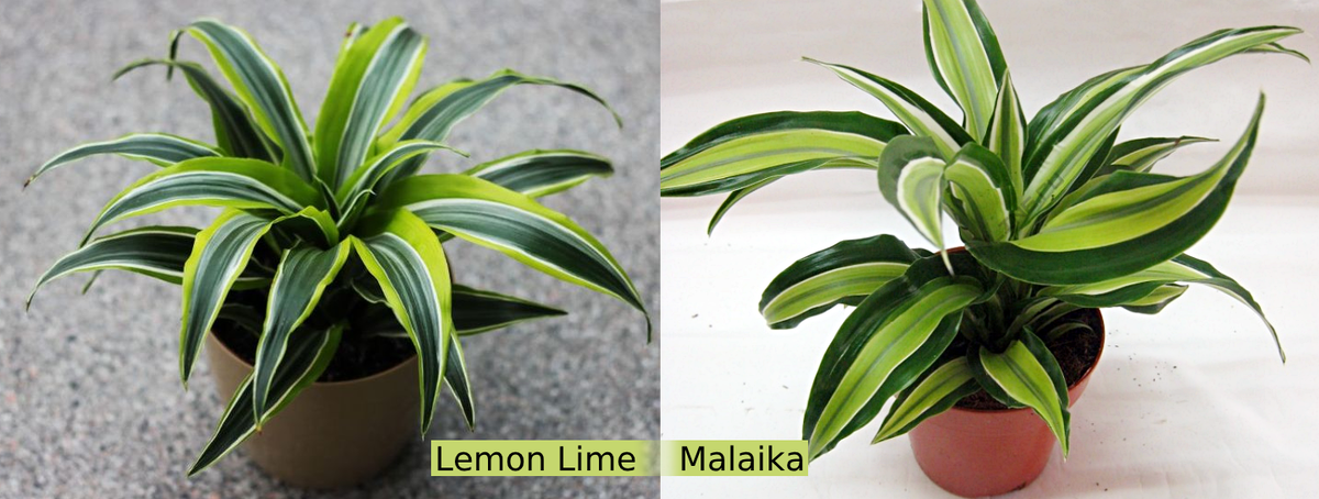 Осенью, вот тут я писала, приобрела я себе крошечную драцену. Мне показалось прикольным иметь у себя две драцены инвертированного окраса: одна – салатовый край и темная середина с белыми полосами, вторая – тёмно-зелёный край с салатовой серединой и белыми полосками. Вот тогда и задумалась я о названиях сортов. До этого мои драцены жили себе безымянными и не плакали. Свою старую я определила как 'Lemon Lime', а новую как 'Malaika'. И всё бы ничего, но Алиса при поисках давала описание одно, а картинки противоположные!