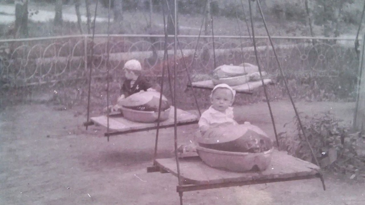 60-е. Карусель "ручной работы" - деревянный настил и корпуса от "списанных" Стрелы и Ракеты на педальной тяге...