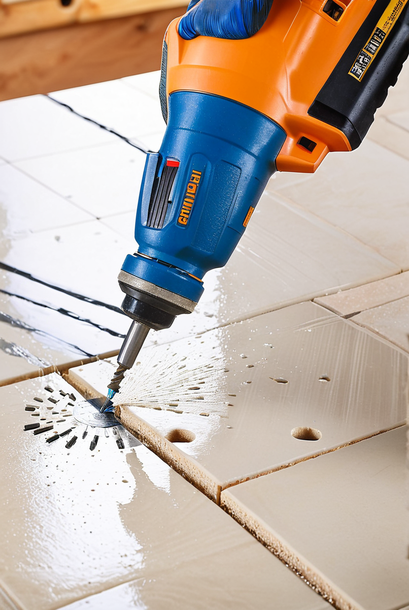 При укладке плитки во время ремонта в ванной для сверления керамогранита применяют сухое сверление. Основной инструмент — УШМ. Нужна специальная алмазная коронка для сухого реза на высоких оборотах. Чтобы сделать отверстие под розетку или под трубу, начните сверлить под углом для захода. Затем выровняйте УШМ. В процессе работы делайте легкие покачивания инструментом — это улучшает охлаждение и отвод пыли. Такая техника позволяет получить ровное отверстие в плитке, работая без трещин и не перегревая дорогую оснастку.