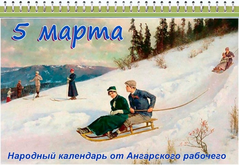 5 марта. Лев катальщик День рождения степлера Всемирный день энергоэффективности Народные поверья и обычаи: на Руси в этот день устраивали катания на санках и верили: кто дальше проедет, у того будет жизнь лучше. В этот день нельзя смотреть на небо, запрещено ночью стоять под звездным небом. Нельзя 5 марта обещать и клясться - обещанное можно не выполнить вследствие серьезных затруднений. Детям до семи лет запрещено стричься, а мужчинам нельзя постригать бороду - к проблемам. В день памяти преподобного Корнилия следует беречься простуд и прочих болезней, ибо, по народным поверьям, хворь с этого дня может привести к печальным последствиям. День в истории 1705 - принят Указ Петра I о наборе рекрутов, положивший начало формированию в России регулярной армии. 1764 - Екатерина II объявила о передаче церковных земель в собственность русской короны. 1930 - в Москве открылся первый звуковой кинотеатр. 1946 - начало "холодной войны" – Уинстон Черчилль во время выступления впервые ввел понятие