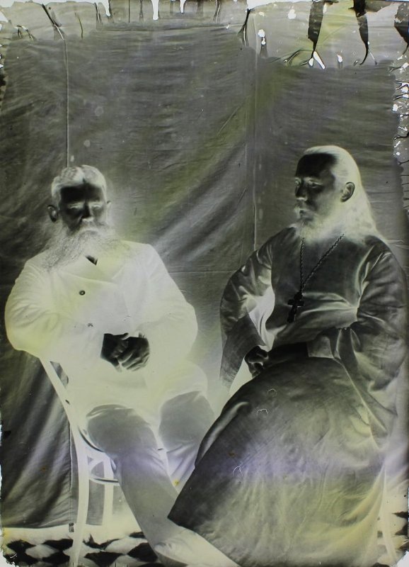 — Фотопластинка. Фотопластинка стеклянная, начало XX вв. На пластинке изображены двое мужчин: купец Н.А. Расторгуев и священник А.М. Винокуров. Сидят на стульях вполоборота. На груди А.М. Винокурова крест с цепью. Муниципальное бюджетное учреждение "Вилюйский краеведческий музей им. П.Х. Староватова" муниципального образования "Город Вилюйск" Вилюйского улуса (района) Республики Саха (Якутия) @yakutskii_gorodovoy