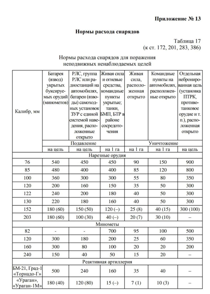 Например, если посмотреть на нормы расхода снарядов (Правила стрельбы и управления огнем артиллерии), то можно увидеть, что для подавления