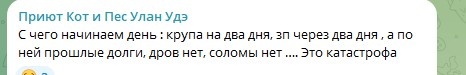Здравствуйте, дорогие друзья! Ситуация в приюте на сегодняшний день очень сложная. Елена Николаевна описывает так: Завтра у нас день выплаты зарплаты за текущую неделю. Но мы до их пор не выплатили за прошлую. Вчера сумма зарплатного долга была 54 000 рублей. У нас заканчивается крупа. Осталось на 2 варки. Но долг за крупу 100 000 рублей. Закончилась солома. Без соломы наши пушистики замерзнут, ведь ночные морозы в Бурятии достигают минус 38 градусов. Закончились дрова. Дровами отапливаются дома, где живут наши кошечки, собачки на лечении, старички и гладкошерстные питомцы, которым на улицу зимой нельзя. И каша с мясом варится на огне, а значит тоже нужны дрова. Наш медблок переполнен питомцами, нуждающимися в лечении и особом уходе. В приюте сейчас очень много старичков. Состарились те, кто когда-то давно приехал в наш приют. Их около 200. Приют "Надежда" до переезда к нам существовал около 15 лет и у них тоже было много возрастных питомцев. Плюс периодически мы пополняемся старичкам