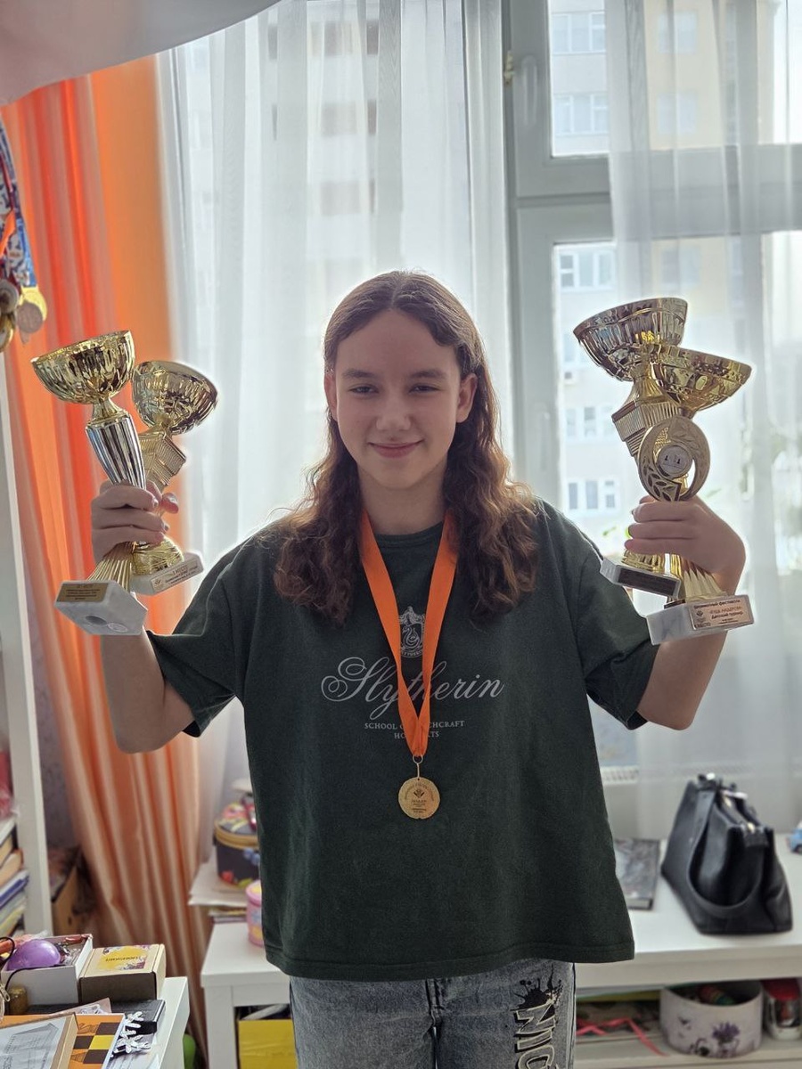 Мир увлечений. На снимке: музыка разума. Вот уже достаточно продолжительное время мое юное поколение: 14 - летняя внучка Анна и 8-летний внук Алеша с увлечением занимаются "тихими играми музыки разума" - шахматами (выражение одного из шахматного профи - прим. авт.). И эта страсть к этой древнейшей игре зародилась в них чуть ли не в первом классе и продолжает разгораться. Анна и Леша непременные участники различных шахматных турниров как в районах города, так и в самом областном центре. Недавно Алексей в течении трех дней даже представлял Нижний Новгород в Самаре в своей возрастной и рейтинговой группах. На снимке: Анна с "букетом" кубков. Правда, впечатляет? Обычно соревнования проходят по воскресеньям и обычно в течении нескольких часов. Согласитесь, что нагрузка немалая, но молодежь держится. Да еще как! На последних областных соревнования Анна заняла первое место в рейтинг - турнире и награждена дипломом и кубком (в дев