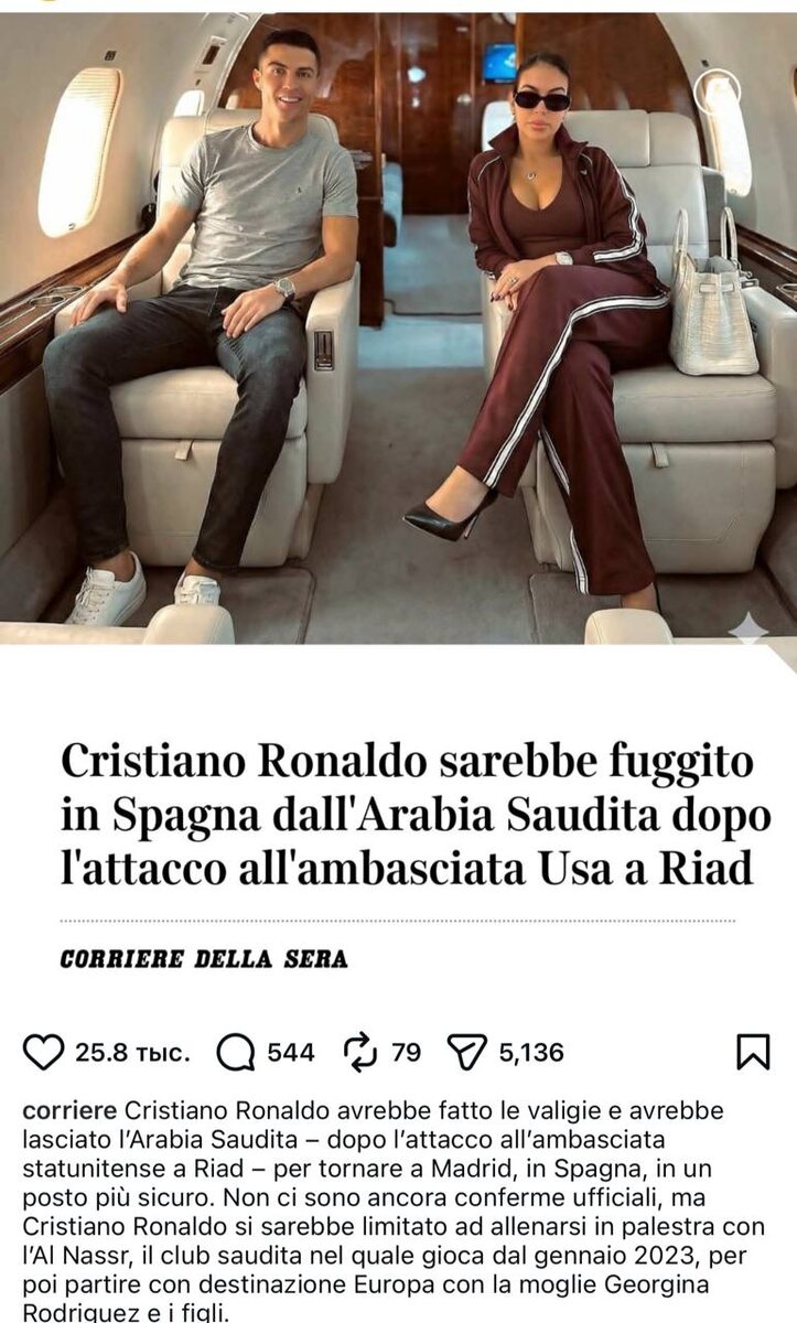 Тем временем, Кристиано Роналдо покинул Саудовскую Аравию. Поехал туда, где спокойнее — в Испанию.
