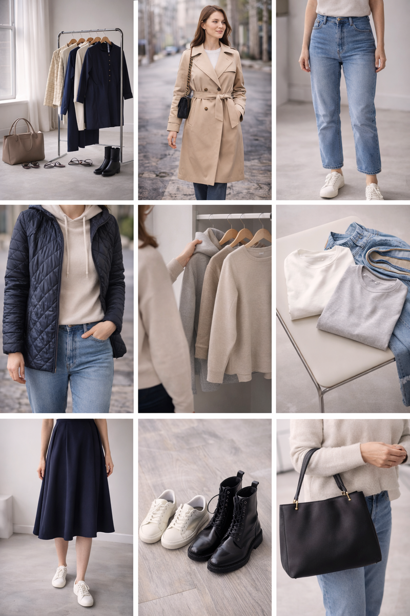 Мысль поста: один удачный тренч или пальто часто убирает потребность покупать три «почти подходящих» куртки.