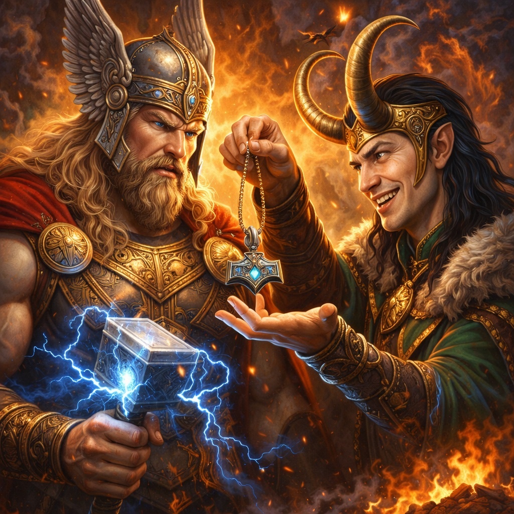 Один из самых любопытных эпизодов связан с амулетом, который Локи однажды преподнёс Тору. Формально это был мощный защитный талисман. По крайней мере, так он был представлен. Но как выяснилось позже — всё было немного сложнее.