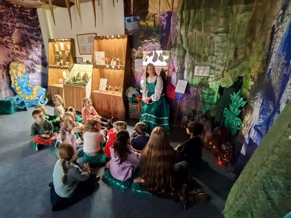 👩 Воспитанники #9ДК приняли участие в олимпиаде «Музеи. Парки. Усадьбы» 🌲и побывали на интерактивной выставке «В гостях у Хозяйки Медной горы» в Музее Уральских Сказов. Ребята словно оказались в мире уральских сказов: узнали о быте жителей Урала, увидели инструменты горных мастеров 👼и коллекцию удивительных уральских минералов и самоцветов, а также услышали легенды об их появлении. 🏞️Воспитанники познакомились со староуральским диалектом, на котором писал свои сказы Павел Петрович Бажов, и даже попробовали немного на нём поговорить. Завершилась экскурсия творческим мастер-классом — каждый смог сделать своё украшение на память🌙 📲 Следите за новостями школы в МАХ. #ДОНМ #Школа1400 #9ДК #МузеиПаркиУсадьбы #ДетскийСад1400