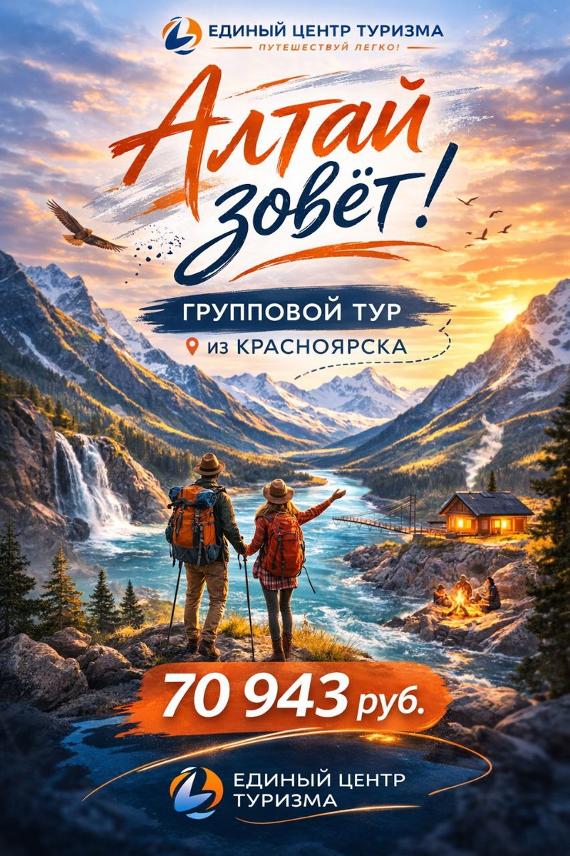 Алтай — это место силы, где горы отражаются в бирюзовых реках, а каждый день наполнен впечатлениями 🌄 Приглашаем вас в экскурсионный групповой тур на Алтай с выездом из Красноярска! 📅 Даты заездов 2026: 04.06–11.06 11.06–18.06 18.06–25.06 25.06–02.07 02.07–09.07 09.07–16.07 16.07–23.07 23.07–30.07 30.07–06.08 06.08–13.08 13.08–20.08 20.08–27.08 ⏳ Продолжительность: 8 дней / 7 ночей 🧭 Тип тура: экскурсионный 🚆 Выезд: из Красноярска (ж/д) ✨ В ПРОГРАММЕ ТУРА: ✔ Путешествие по легендарному Чуйскому тракту ✔ Перевалы Семинский и Чике-Таман ✔ Гейзерное озеро ✔ Слияние рек Чуя и Катунь — место силы ✔ Петроглифы Калбак-Таш ✔ Экскурсия «Легенды Чемала» ✔ Храм на острове Патмос ✔ Чемальская ГЭС ✔ Сплав по Катуни с прохождением порога Ирадаш ✔ Манжерок и гора Малая Синюха ✔ Свободные дни для отдыха и доп. экскурсий 🏨 ПРОЖИВАНИЕ И ПИТАНИЕ • Гостиницы по маршруту • Завтраки включены 💰 СТОИМОСТЬ 70 943 ₽ / чел при 2-местном размещении ✅ В СТОИМОСТЬ ВХОДИТ: ✔ Ж/д билеты туда и обратно ✔ П