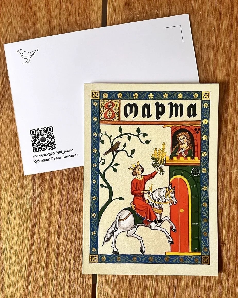 Новые авторские открытки уже в сувенирном магазине. Поздравьте ваших дам с весенним праздником. На обороте открытки хватит места для любовной вирши или куртуазного стихотворения.