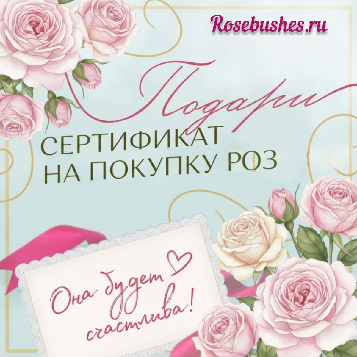 Сертификат Rosebushes.ru — это целая история любви, которая вырастет в роскошные розы. Красиво, романтично и очень лично.