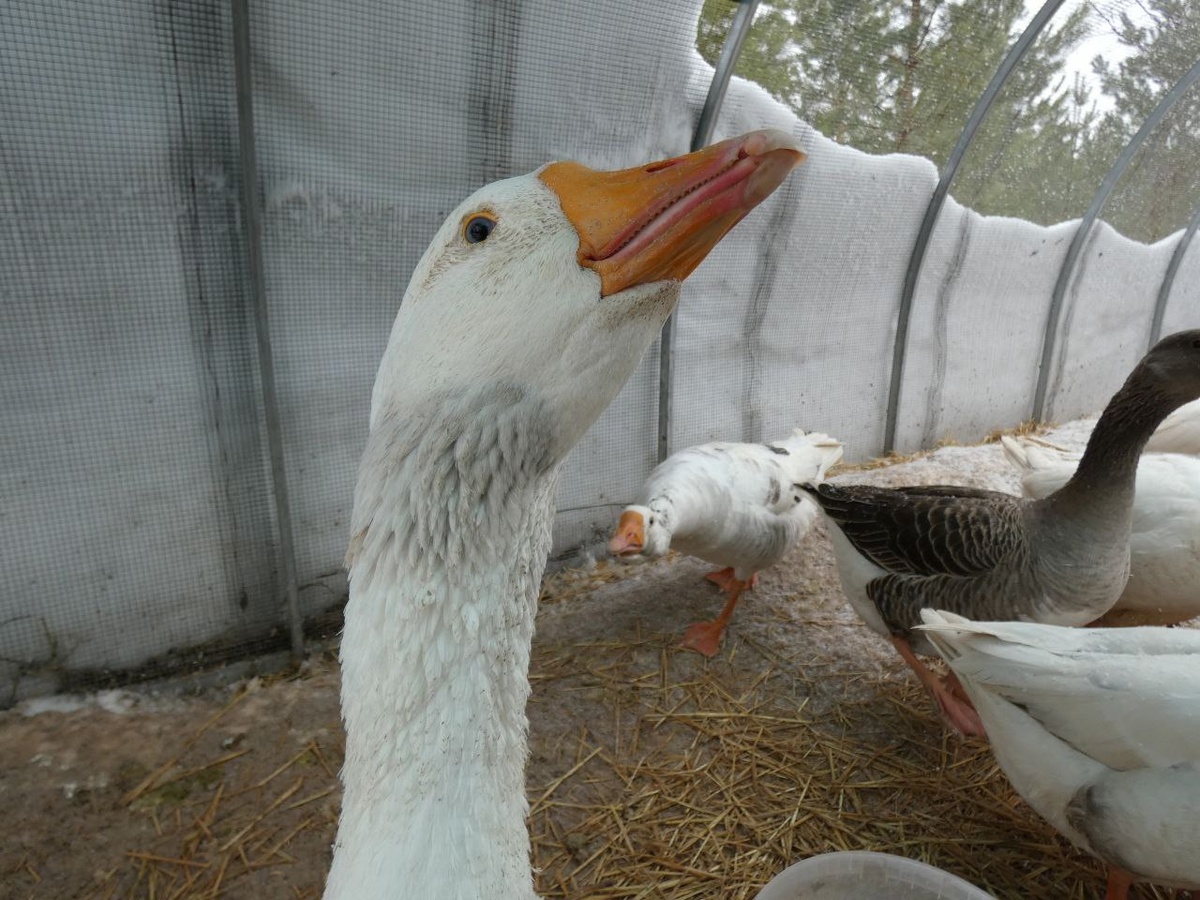 Гуси в тюрьме! И вообще все птицы сейчас заперты, кто в вольерах, кто в зимних помещениях