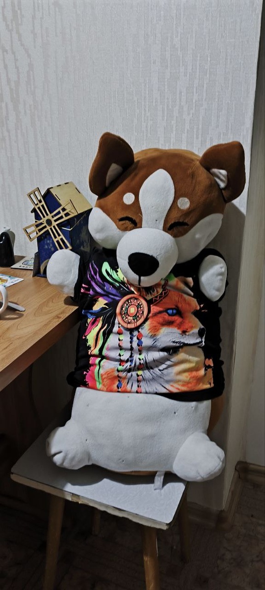 🐶Два пёселя были найдены на мусорке - как обычно. Тот, который сидит в футболке, был найден строго в Рождество. Порванный, грязный, одинокий... Наполнитель был вынут, шкурка выстирана... правда, потом обнаружилось, что он весь в мелких дырочках, которые зашивать - гиблое дело. Поэтому он утеплился моей футболкой и теперь живет со мной. Зато белого не пришлось даже зашивать - просто чистка, и всё. 😺А вот кошка... Кошка - игрушка моего детства. В далеком 2001 папа привёз её из Москвы специально для меня. Пережила она долгие годы ожидания в глубинах шкафа, в пыли... Да ещё и наполнитель у нее был красным, из-за чего вся шерсть была в непонятном ворсе. Жутко бесило! В общем, тут пришлось и стирать, и расчесывать, и полностью менять содержимое. Теперь она чистая, с повышенной пушистостью, сидит среди всех моих плющевых питомцев. #плюшевые_спасёныши