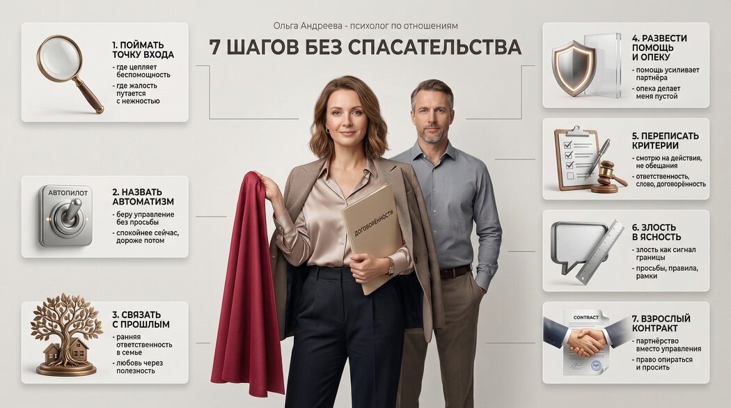 "Я снова выбрала того, кому нужна опора. В отношениях я быстро становлюсь сильной, удобной, решающей. А потом у меня внутри поднимается злость - потому что я опять живу за двоих". С такими жалобами чаще всего приходят ко мне клиентки на консультацию. Я - Ольга Андреева, психолог по отношениям. Этот сценарий редко начинается с глупости или наивности - он начинается с привычки быть взрослой слишком рано. Детские травмы взрослых часто выглядят прилично: вы ответственная, собранная, надёжная.