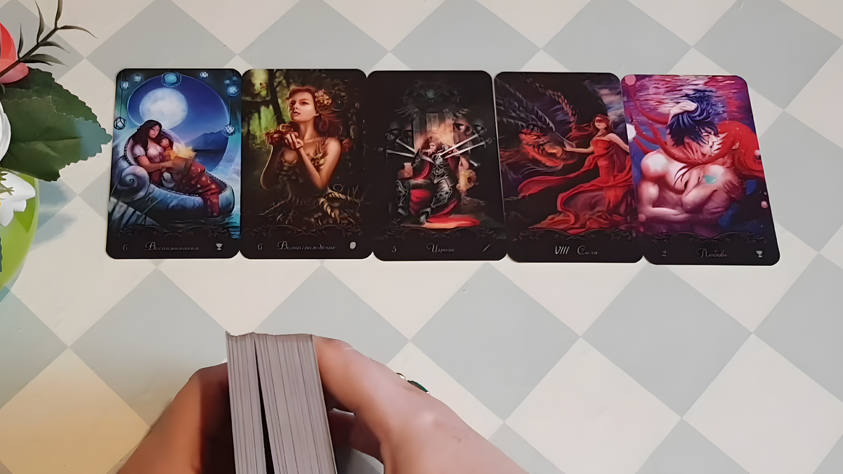 Девочки, всем привет! С вами Анна. У меня сегодня для вас гадание, которое я решила назвать: «Он слишком дорого заплатит за дешёвку». Кому эта тема интересна — подтягивайтесь. Давайте посмотрим: что за человек, почему у него дешёвые отношения? Может, я окажусь не права — тогда возьму свои слова обратно. Бывает и такое в гадании. Итак, поехали. Кого вы сегодня ко мне привели? Кто ко мне пришёл? Сразу выходит карта прошлого. Это человек был вашим прошлым. Возможно, вы одна сейчас с ребёнком, а этого мужчины рядом нет. Может, осталась добрая память, может — недобрая. Будем смотреть. Уже пошла ситуация: Шестёрка Пентаклей. Вас связывают денежные моменты — алименты, выплаты ребёнку, ожидание денег. Только финансовые узы, никаких эмоциональных отношений.