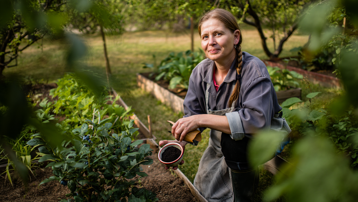 Раньше черника у меня росла уныло: кустики маленькие, ягоды мелкие, три куста давали в лучшем случае горсть. На третий год регулярного мульчирования гущей я собрала с тех же трёх кустов больше двух килограммов. Кусты выросли, листья потемнели, ягоды стали крупнее.