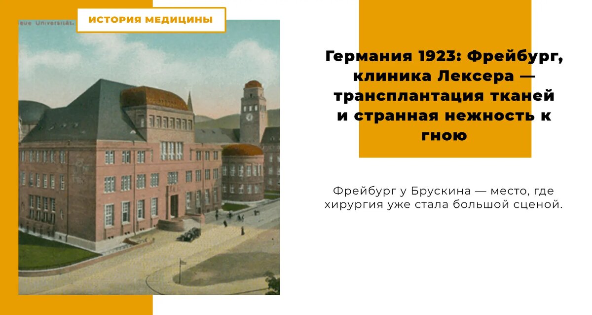 Германия 1923: Фрейбург, клиника Лексера — трансплантация тканей и странная нежность к гною