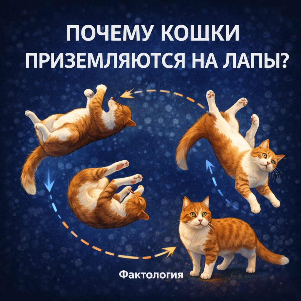 Одна из самых известных особенностей кошек — способность почти всегда приземляться на лапы. Даже если кошку уронить с небольшой высоты вверх ногами, она часто успевает перевернуться в воздухе и приземлиться правильно.