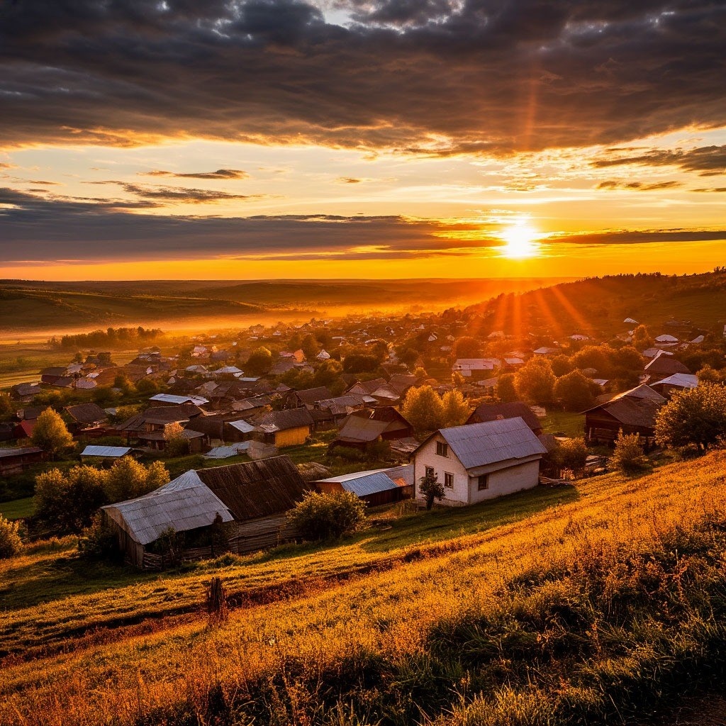 У каждого из нас есть место, где душа находит покой, — родная деревня. И даже если мы живём в городе, в сердце храним её образ: тропинку к реке, запах свежескошенной травы, голос бабушки, зовущей домой. Потому что деревня — это не просто точка на карте. Это колыбель, в которой вырос русский народ, и источник силы, который питает нас до сих пор. Деревня - это как старая берёза у дороги: кто‑то видит в ней просто дерево, кто‑то — символ Родины, кто‑то — материал для поделок. Но каждый, остановившись под её ветвями, чувствует: здесь начинается что‑то настоящее. И неважно, живёшь ты в ней или приезжаешь в гости — она даёт тебе частицу своей души, а взамен просит лишь одного: помнить, откуда ты родом. Деревня — не просто набор домов и улиц. Она живёт по своим законам, дышит в ритме природы, растёт, меняется, переживает взлёты и падения — совсем как человек. В этом сравнении раскрывается её истинная суть: деревня — живой организм, в котором всё взаимосвязано. Чистая, нетронутая красота деревенской природы веками вдохновляла творцов — художников и поэтов. Она не нуждалась в приукрашивании: достаточно было лишь увидеть ,почувствовать, запечатлеть бескрайние просторы, от которых захватывает дух, поля, уходящие за горизонт, волнистые холмы, перелески — всё это дарит ощущение бескрайней свободы . Здесь нет тесных улиц и высоких домов: только небо, широкое и высокое, словно купол над миром, да ветер, что гуляет на просторе и шепчет что‑то древнее и мудрое. Неторопливо течёт деревенская речка — то широкая и спокойная, то узкая и говорливая. Вода в ней прозрачная, на дне видны камешки и песчаные отмели. По утрам над рекой висит лёгкая дымка тумана, а в полдень она сверкает на солнце, будто усыпанная блёстками. На берегу — уютные места для отдыха: поваленное дерево, тёплая галька, мягкая трава. Можно целый день просидеть, забывая о времени ,слушая журчание воды или окунуться в прохладную свежесть в жаркий день, просто смотреть, как играют солнечные блики на волнах. За околицей начинается лес — таинственный и приветливый одновременно. Высокие сосны тянутся к небу, берёзы шепчутся листвой, а в глубине прячутся грибы и ягоды. Воздух здесь густой от ароматов хвои, земляники и влажной земли. В низинке, под склоном холма, бьёт родник. Вода в нём ледяная, кристально чистая — кажется, будто сама земля дарит этот дар. Над родником — простая деревянная беседка, а рядом ковш на цепочке. Каждый глоток этой воды — прохлада и бодрость, а звук капающих капель успокаивает, словно колыбельная. Сюда приходят с вёдрами, с кружками, с фляжками — и каждый уносит частицу деревенской благодати.