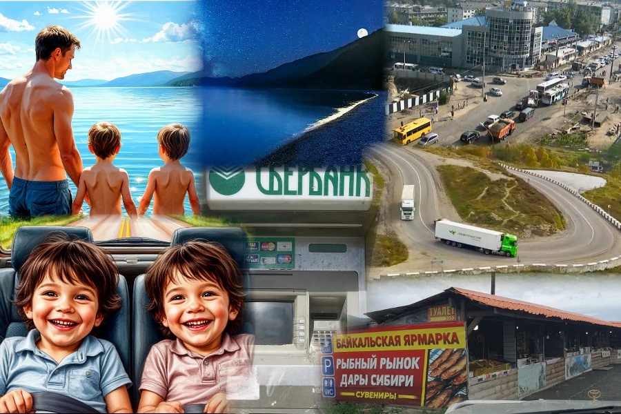 Завтракали в кафе на трассе, и довольно-таки вкусно было приготовлено, даже мальчишки всё съели. В Слюдянке на посту ГАИ нас не остановили, переезд удачно проскочили. На серпантин начали подниматься, сыновья вообще на месте не сидели, от одного окна к другому перемещались, вперёд смотрели, Ольга их пыталась успокоить, но после пары попыток оставила это занятие, пацанам же жуть, как всё было интересно. Слева карман и рыбный рынок. Зарулил я туда, вяленную и холодного копчения рыбу купили, Ольга её долго осматривала и обнюхивала.