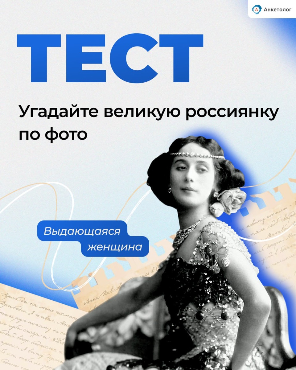 ➡️ Пройти тест: https://clck.ru/3SHhc7 📸 Мы подготовили тест из 10 вопросов и предлагаем вам угадать по фото великих женщин России и СССР. 💡 Подсказка: они меняли науку, культуру, спорт и даже космос. ✨ Спасибо за ваши лайки! Делитесь результатами в комментариях! #тест #тестонлайн #квиз #женщины #история #Россия #СССР #викторина