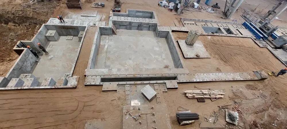 Когда говорят о прокатных или кузнечно-прессовых цехах, обычно представляют огромные станки и пролёты зданий. Но основа любого такого производства скрыта от глаз — под землёй. Именно там находятся многоуровневые фундаменты, которые держат оборудование весом в сотни тонн и годами гасят динамические нагрузки. На одном из объектов ПромСтройМонолит выполнял основания сразу для нескольких ключевых агрегатов: — раскатной машины — шлеппера (системы транспортировки металла) — гидравлического пресса усилием 3150 тонн Это не просто бетонная плита. Подземная часть напоминает инженерный лабиринт из приямков, каналов и анкерных групп. Главная задача — не только выдержать массу оборудования, но и гасить вибрации, сохраняя идеальную геометрию станков. Даже минимальная деформация может вывести оборудование стоимостью в миллионы из строя. С какими задачами столкнулись 👇🏼 ▪️ глубина фундамента местами достигала 3–4 метров ▪️ на глубине появились грунтовые воды и плывуны ▪️ работы велись в очень стеснё