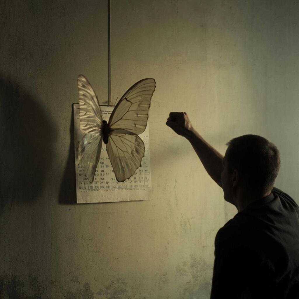 Она не вспорхнула, как обычная бабочка, не заметалась по комнате — она просто отделилась от календаря и повисла в воздухе, напротив его лица. Крылья двигались медленно, плавно, оставляя за собой шлейф черной пыльцы. Глаза-фасетки смотрели прямо в зрачки.
