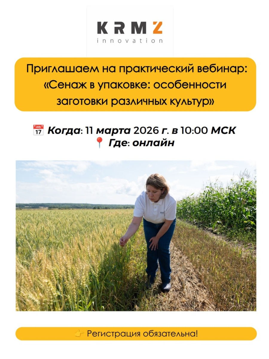 » Если вы хотите получать стабильно качественный сенаж независимо от культуры — этот вебинар для вас! Когда: 11 марта 2026 г. в 10:00 МСК Где: онлайн Для кого будет полезно: Уже заготавливаете сенаж в упаковке, но качество «скачет» — разберём причины и решения. Только планируете начать, но слышали, что у соседей «не получается» — развеем страхи и покажем, как делать правильно. О чём поговорим: - Особенности заготовки разных культур: почему одни хранятся идеально, а другие портятся. - Типичные ошибки и как их избежать. - Практические ориентиры для принятия верных решений прямо в поле. Наши спикеры: Анна Шумилова, агротехнолог КРМЗ, ежегодный спикер AGROSALON и AgrosExpo. Константин Афанасьев, главный агроном СПК им. Чапаева — практик с огромным опытом заготовки сенажа в упаковке. Регистрация обязательна: kursagro.ru/..._vk