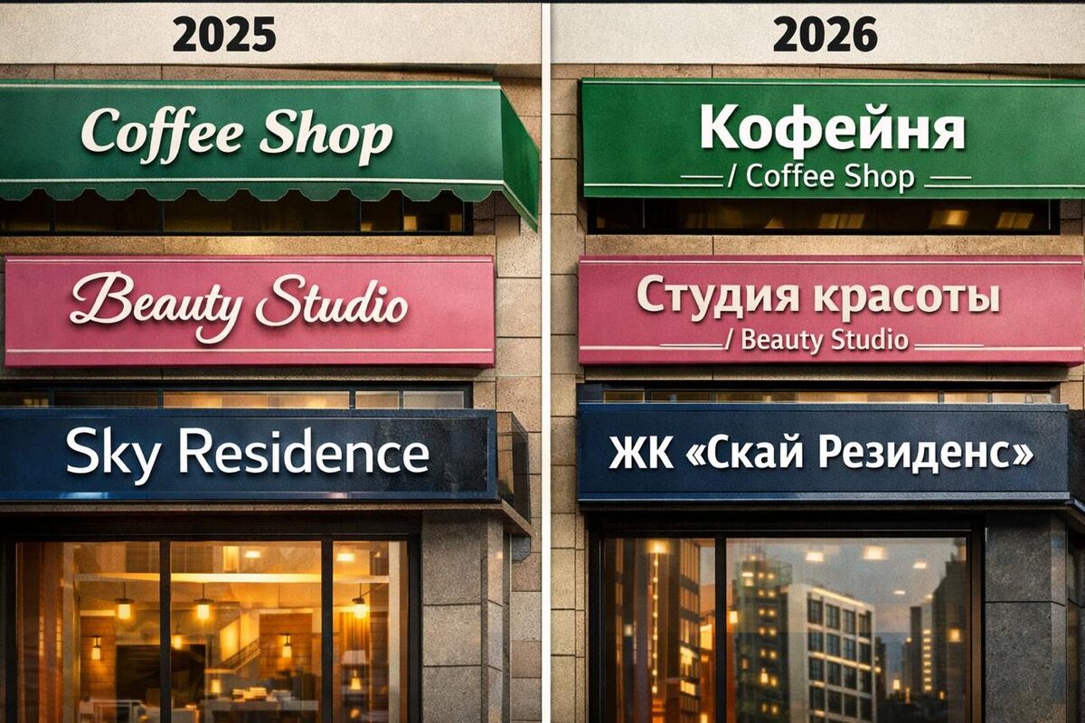 С 1 марта 2026 года в России введены новые правила использования русского языка в публичной информации. Фактически это означает: английские вывески больше не могут быть основными. Новые требования касаются всей информации для клиентов: • вывесок • указателей • меню • сайтов • мобильных приложений • информации в соцсетях Русский язык должен быть основным, иностранный - только как перевод. Пример: ❌ Coffee Shop ✅ Кофейня / Coffee Shop Названия жилых комплексов должны быть только на кириллице. ❌ ЖК River Park ✅ ЖК «Ривер Парк» Если название - зарегистрированный бренд, оно может остаться на иностранном языке. Сколько вывесок и названий в вашем городе сейчас на английском? Похоже, в 2026 году нас ждёт массовый ребрендинг. Подписывайтесь на ПРОМИНДЕКС — канал для тех, кто строит, производит и развивает Наш канал в MAX