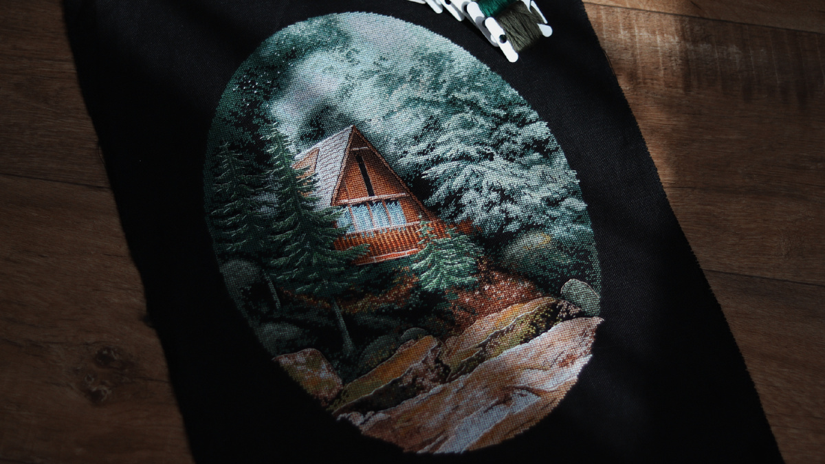 Всем привет! Хочу сегодня с вами поделиться своей первой законченной вышивкой в этом году. Это «Домик в лесу» от Анастасии Арнаутовой.