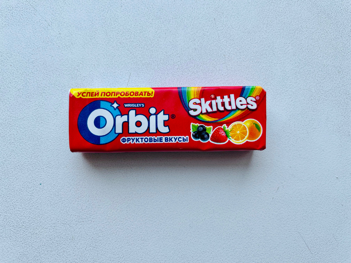 Вкус у этой жевательной резинки предполагает ассорти: черная смородина, клубника и апельсин.
