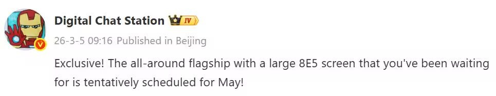Xiaomi готовит к выпуску новый флагманский смартфон 17 Max с процессором Snapdragon 8 Elite Gen 5. Вопреки ранее появившимся слухам о презентации в апреле, новые утечки от инсайдера Digital Chat Station указывают на май как дату анонса на китайском рынке. Ещё по теме: По предварительным данным, Xiaomi 17 Max оснастят внушительным 6,9-дюймовым плоским OLED-экраном с разрешением 1,5K и частотой обновления 120 Гц, а также ультразвуковым сканером отпечатков, встроенным в дисплей. Смартфон будет работать под управлением HyperOS 3 на базе Android 16. ⚡Подписывайтесь на канал itzine и канал подкаста ForGeeks в Telegram! Там самые свежие новости про технологии, гаджеты и космос. Основная камера обещает впечатляющую тройную конфигурацию с основным сенсором Samsung HPE на 200 МП, вторым ультраширокоугольным модулем на 50 МП и перископическим телефотообъективом на те же 50 МП. Для селфи предусмотрена фронтальная 50-мегапиксельная камера. 👉 Читайте также наши материалы на itzine.ru Устройство пол