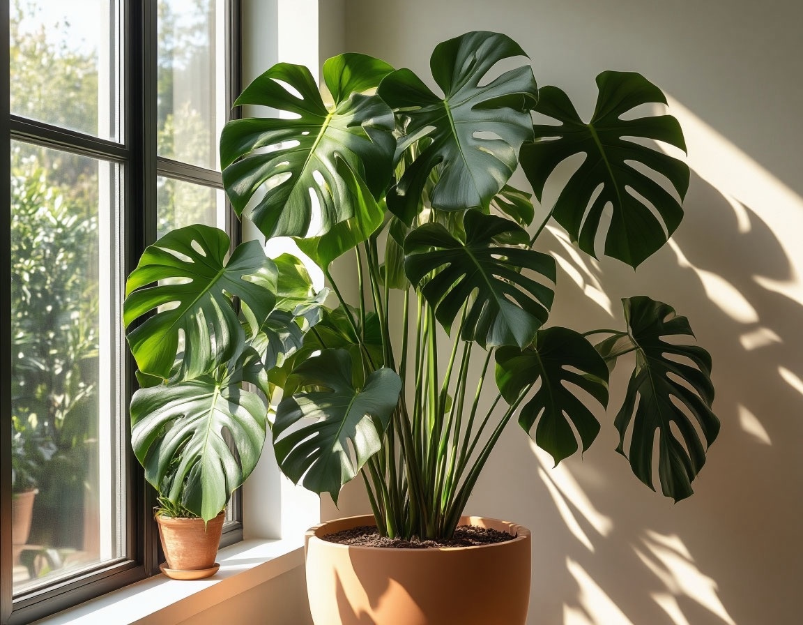 - Переставьте монстеру ближе к окну. Идеально — восточное или западное. Южное можно, но с притенением от прямых лучей (ожоги).