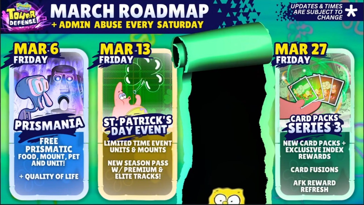 ! Очень много обновлений и изменений будет в игре, о которых мечтали многие! Итак, начнем: 1. 7 марта в 01-30 по МСК стартует ивент Призмания. Суть ивента заключается в том, что вы будете стоять в лобби и каждые 30 минут получать новый кейс с призматическими наградами (юниты, питомцы, еда). Ивент продлится всего 1 неделю. Так что запускайте пару десятков ферм, чтобы получить в десять раз больше призов. Инфа есть на моем BOOSTY 2. 7 марта в 18 по МСК стартует Админ Арбуз со множеством призов. Будет как минимум 4 бесплатных геймпасса и также кодкрейты! 3. В ближайшем обновлении произойдет много изменений, улучшающих качество игры: - вернут максимальный фьюз! - все зелья поднятия уровня, звезд и тд. можно будет использовать на петах - все зелья будут действовать на всех призматиков 4. Следующий ивент начнется 13 (14) марта! Ивент Святого Патрика продлится также 7 дней и скорее будет состоять из различных квестов. 5. Сезон пасс будет переработан. Появится 3я графа - элитный пасс или