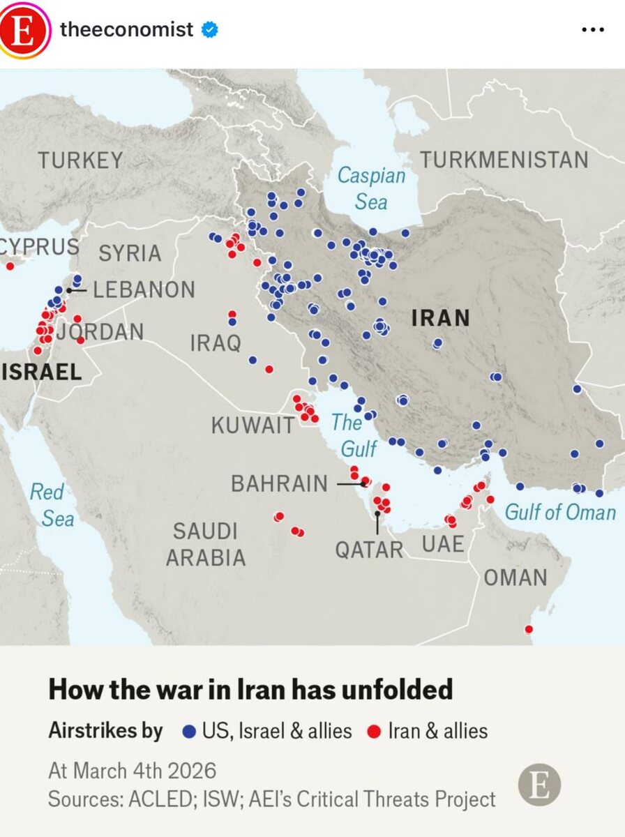 Карта обмена ударами между США, Израилем и Ираном