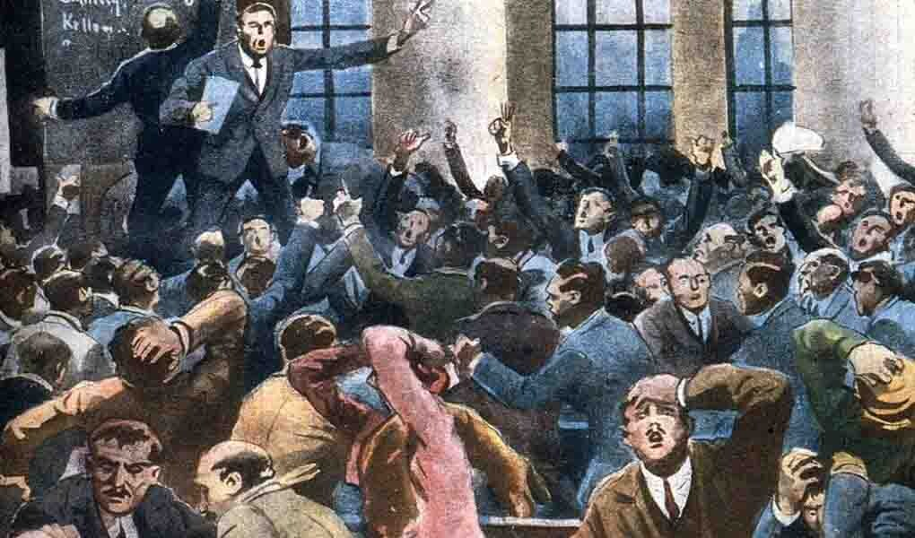 В четверг, 24 октября, «чёрный четверг», рынок открылся падением на 11 процентов. В первые три минуты торгов сменили владельцев почти три миллиона акций. Биржевые тикеры — механические устройства, печатавшие котировки на бумажной ленте, — отставали от реальных торгов на несколько часов. Брокерские конторы по всей стране были заполнены людьми, смотревшими на цифры, которые уже ничему не соответствовали. Несколько крупных банков во главе с Национальным городским (нынешний Citibank) демонстративно скупили крупные пакеты акций выше рыночной цены — тот же приём применялся во время паники 1907 года. Рынок закрылся в небольшом минусе. Все выдохнули.