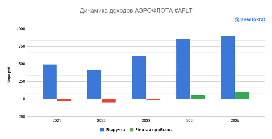 📊 Прелесть нашего фондового рынка в том, что здесь представлены компании из разных секторов экономики. И некоторым из них дешевая нефть выгодна, в отличие от большинства экспортеров. И одним из таких сегментов являются авиаперевозки. Сегодня разберемся, как чувствует себя крупнейший представитель данного сектора - Группа «Аэрофлот». ☝️ Нельзя сказать, что для Аэрофлота ветер был исключительно попутным, потому что высокие ставки и крепкий рубль в прошлом году ударили по всем отраслям. Тем не менее, полученные результаты превзошли ожидания многих аналитиков. 📈 Начнем с операционных показателей. Пассажиропоток за год составил 55,3 млн человек, практически на уровне 2024 года, но помним, что там была высокая база (https://t.me/investokrat/2872)! Так что отсутствие снижения это тоже хороший результат. 🌎 Продолжают восстанавливаться международные перевозки, которые долгое время находились под давлением. Рост за год составил 5,2%, до 13,4 млн пассажиров, а в 4 квартале и вовсе превысил 10%